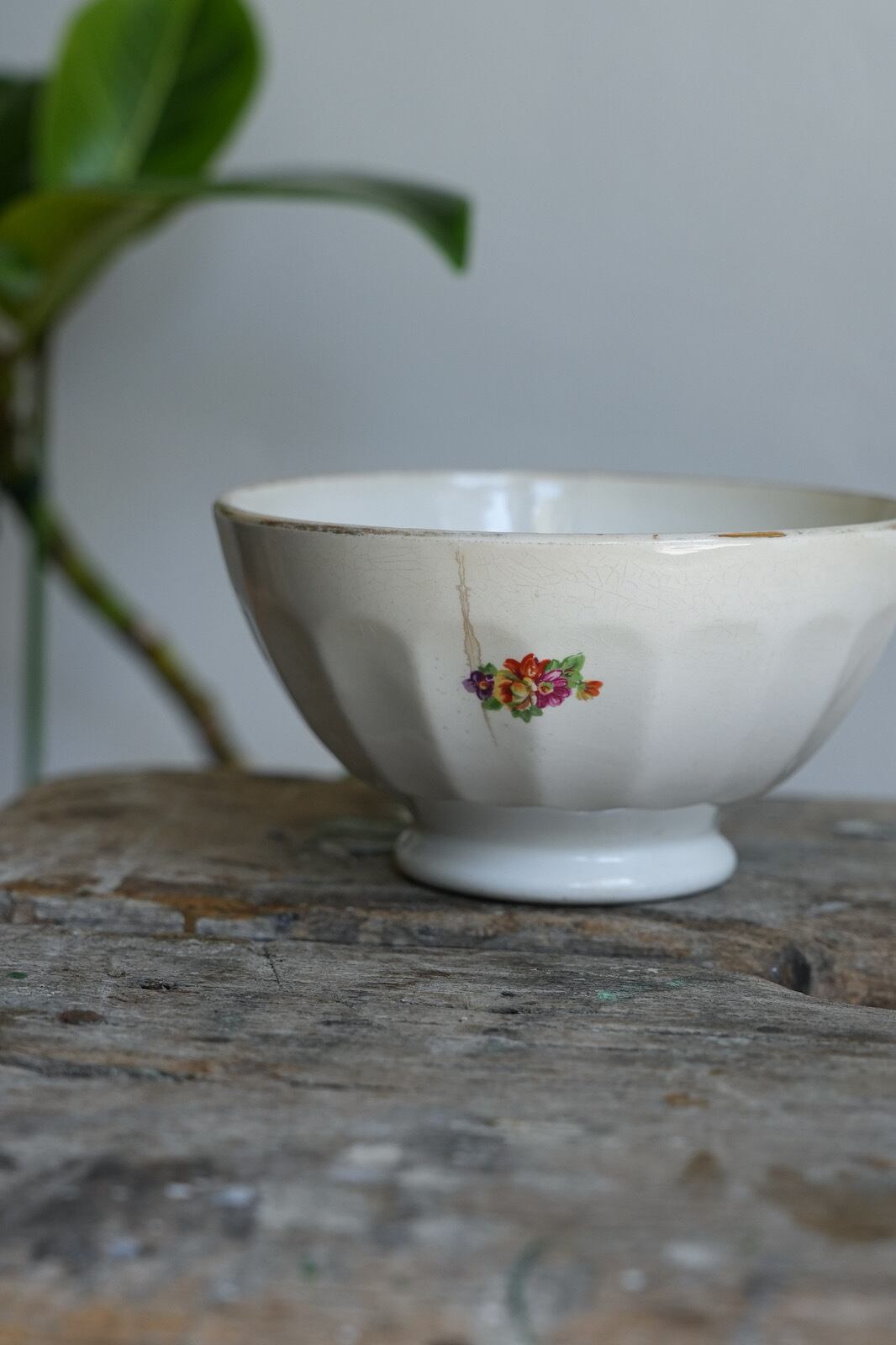 小さな花柄がポイントのかわいいカフェオレボウルです。 直径約12.5cm、深さ約7cm