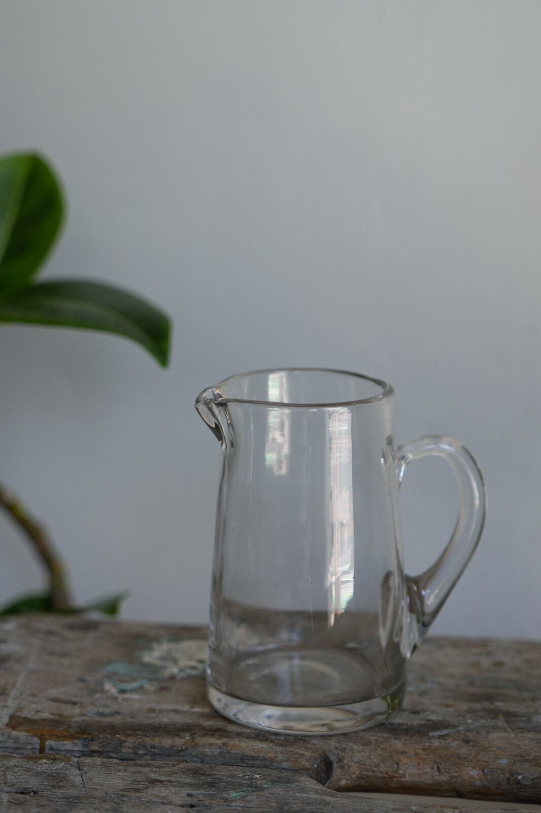 ありそうで実はあまり出てこない、きれいなガラス製の古いジャグです。 高さ約12.5cm